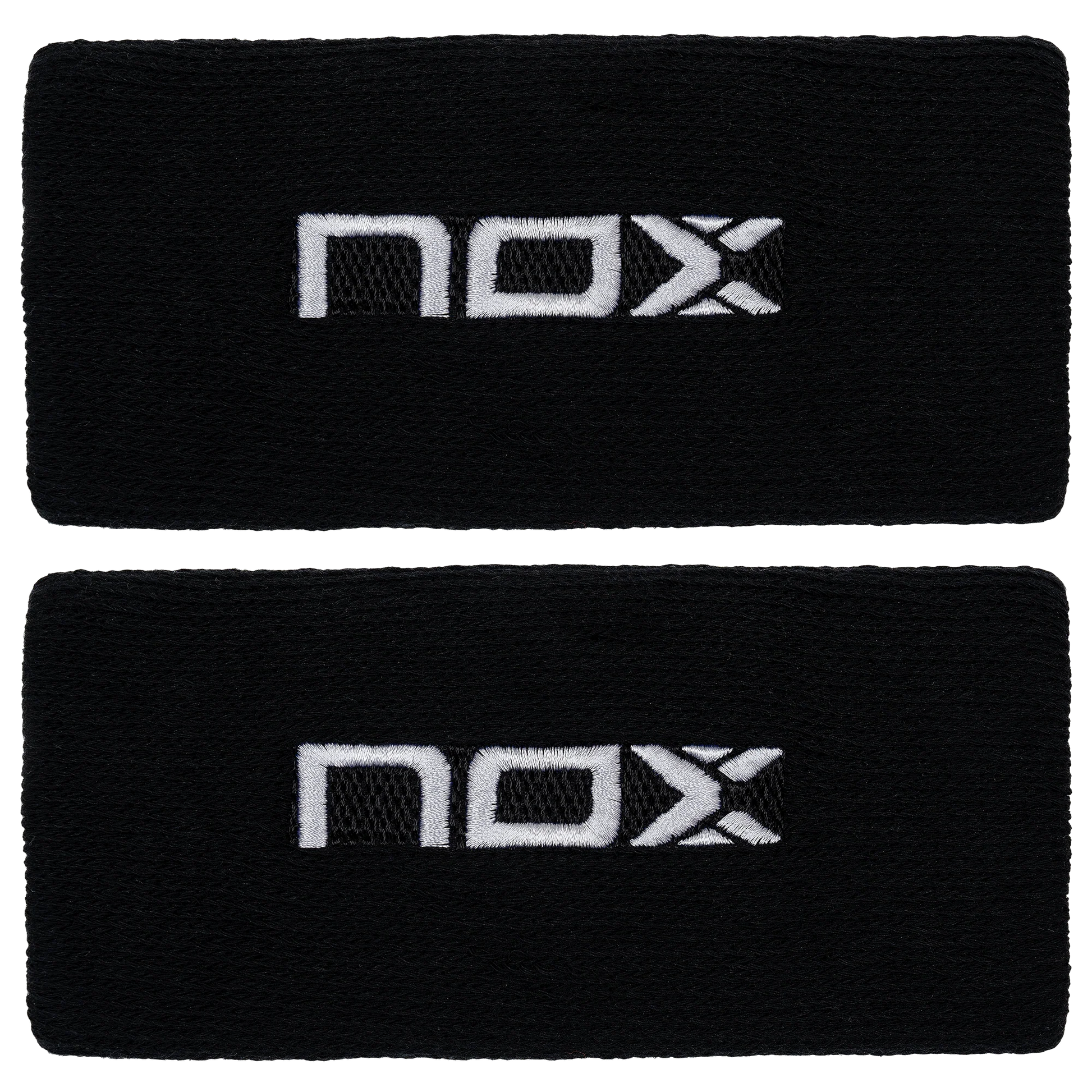 Mantén tus muñecas protegidas en cada golpeo con las muñequeras deportivas para pádel Nox en color negro con logo blanco.
